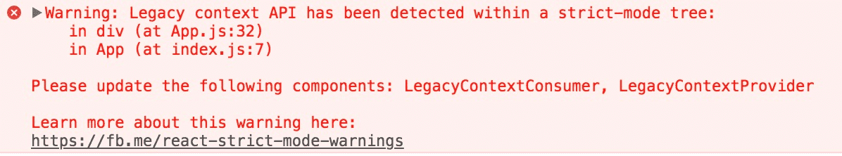La API legada para el contexto es propensa a errores, y será eliminada en una versión principal a futuro. Aún está funcionando para todas las versiones 16.x pero mostrará el siguiente mensaje de advertencia si se usa en modo estricto: